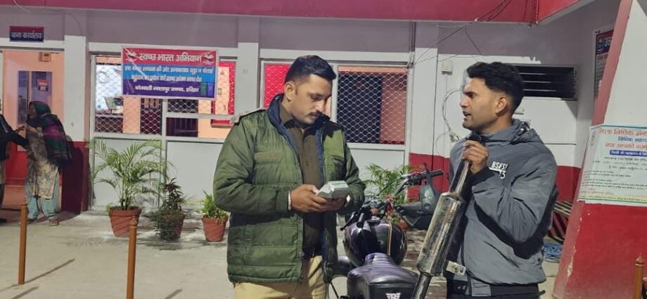 बुलेट मोटरसाइकिल से पटाखे की आवाज निकालने पर पुलिस ने सिखाया युवक को सबक