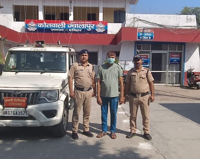 नाबालिग से दुष्कर्म के आरोपी को पुलिस ने किया गिरफ्तारहरिद्वार, 3 अक्तूबर। नाबालिग से दुष्कर्म मामले में फरार चल रहे आरोपी को ज्वालापुर कोतवाली पुलिस ने गिरफ्तार कर लिया है। आरोपी मूलरूप से बिहार के सिवान जिले का रहने वाला है। 21 जुलाई को कोतवाली क्षेत्र निवासी नाबालिगा के परिजनोंContinue Reading
