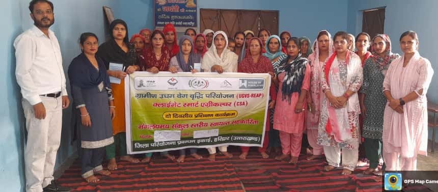 उत्तराखंड ग्राम्य विकास समिति के अंतर्गत संचालित ग्रामीण उद्यम वेग वृद्धि परियोजना / ग्रामोत्थान योजना के तहत मुख्य विकास अधिकारी हरिद्वार श्रीमती आकांक्षा कोण्डे के निर्देशन एवं जिला परियोजना प्रबंधक संजय सक्सेना (रीप / ग्रामोत्थान परियोजना) की देखरेख में भगवानपुर ब्लॉक के ग्राम सरठेढ़ी शाहजहांपुर स्थित मंगलमय सीएलएफ में दो दिवसीय क्लाइमेट स्मार्ट एग्रीकल्चर (सीएसए) प्रशिक्षण कार्यक्रम का सफल आयोजन किया गया।