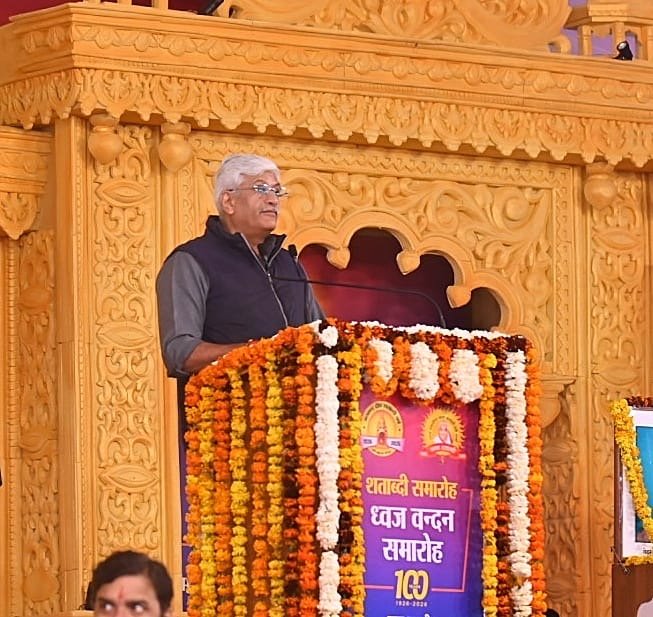 इस अवसर पर केन्द्रीय संस्कृति एवं पर्यटन मंत्री गजेन्द्र सिंह शेखावत ने कहा कि सेवा, साधना और संस्कार के त्रिवेणी संगम यह शताब्दी समारोह नवयुग का निर्माण में मील का पत्थर साबित होगा। विश्व की महान सभ्यताओं का निर्माण सामूहिक चरित्र निर्माण के माध्यम से ही संभव हुआ है। जब समाज के व्यक्ति नैतिक मूल्यों, अनुशासन और सेवा भाव को अपने जीवन का आधार बनाते हैं, तभी सशक्त संस्कृति और स्थायी सभ्यता का निर्माण होता है। जनशताब्दी समारोह इसी सामूहिक चेतना को जाग्रत करने का एक महत्त्वपूर्ण प्रयास है।