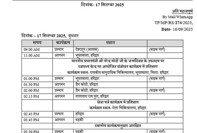 हरिद्वार, दिनांक 16 सितम्बर, 2025