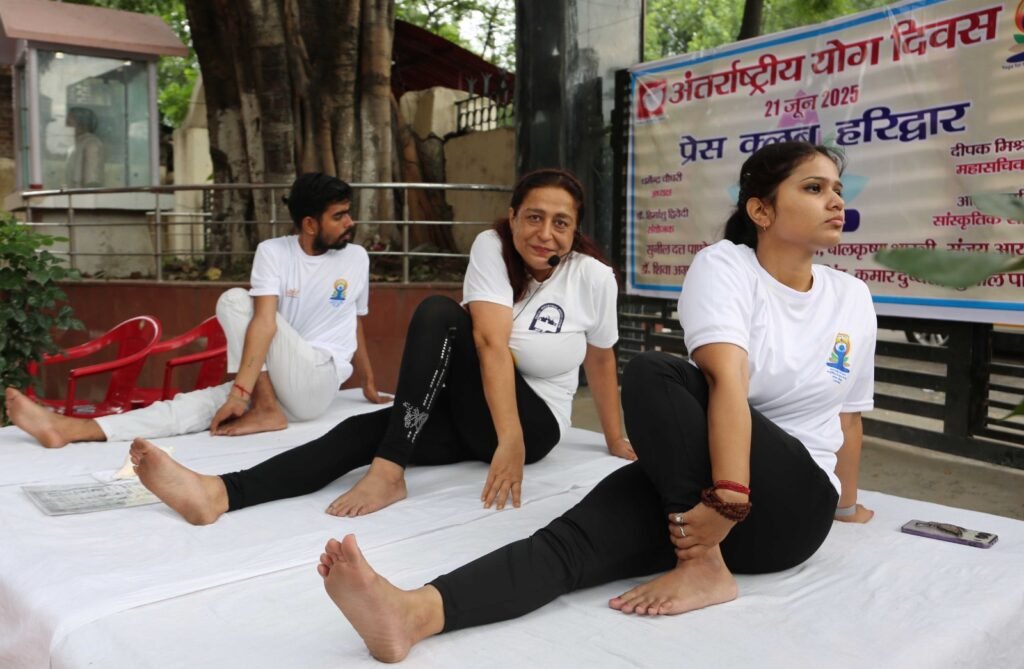 हरिद्वार, 21 जून। अंतर्राष्ट्रीय योग दिवस के अवसर पर प्रैस क्लब में योग शिविर का आयोजन किया गया। शिविर में पत्रकार व योगाचार्य डा.राधिका नागरथ ने भावना भारद्वाज व रोहित वर्मा के साथ पत्रकारों को विभिन्न आसनों व प्राणायाम का अभ्यास कराया। डा.राधिका नागरथ ने कहा कि नियमित रूप से योग करने से व्यक्ति में एक नई शक्ति का संचार होता है। योग शरीर के 7 चक्रों को भी प्रभावित करता है। प्रैस क्लब अध्यक्ष धर्मेन्द्र चौधरी ने कहा कि योग वैदिक काल से भारतीय जनजीवन का हिस्सा रहा है। योग शारीरिक स्वास्थ्य के साथ मानसिक और आध्यात्मिक स्वास्थ्य को भी दुरुस्त करता है। शरीर में मौजूद 7 चक्र शरीर, मन और भावनाओं को ठीक रखने की चाबी भी हैं। योग के माध्यम सही तरीके से सातों चक्रों को एक्टिवेट करने पर शरीर पर गहरा सकारात्मक प्रभाव होता है।