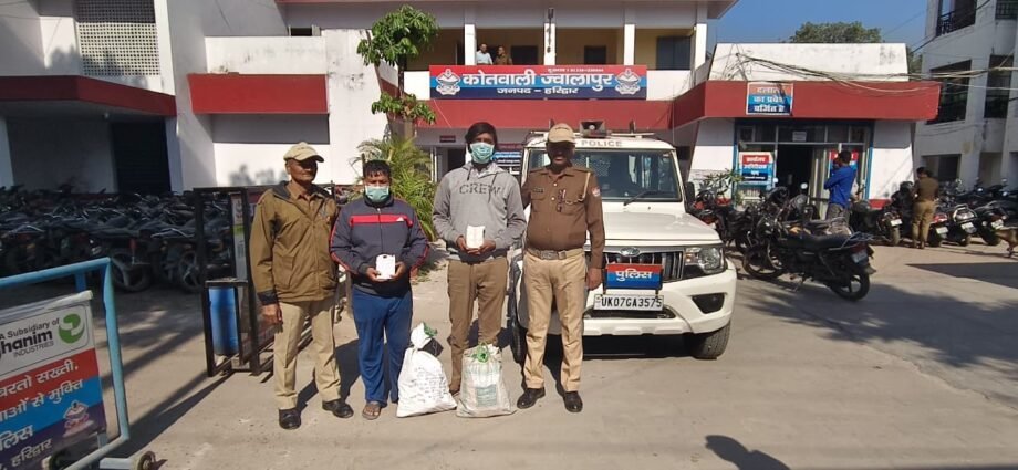 हरिद्वार, 18 नवम्बर। ज्वालापुर कोतवाली पुलिस ने दो शराब तस्करों को गिरफ्तार किया है। आरोपियों के कब्जे से देशी शराब के 112 पव्वे बरामद हुए हैं। एसएसपी के आदेश पर अवैध रूप से शराब बेचने का धंधा करने वालों के खिलाफ अभियान चलाते हुए चेकिंग के दौरान पुलिस ने राजू पुत्र धन सिंह निवासी छतरी वाला कुआं निकट पीठ पुलिया जगजीतपुर थाना कनखल व जयदेव बनिक पुत्र खोकन निवासी बंगाली बस्ती ब्रह्मपुरी कोतवाली नगर को दबोच लिया। राजू के कब्जे से देशी शराब के 52 व जयदेव बनिक के कब्जे से 60 पव्वे बरामद हुए। आरोपियों के खिलाफ आबकारी अधिनियम के तहत मुकद्मा दर्ज किया गया है। पुलिस टीम में कांस्टेबल नरेंद्र राणा, संजय राणा, अंकुर चौधरी व दिनेश कुमार शामिल रहे।