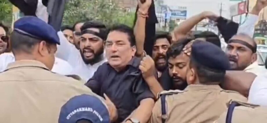 हरिद्वार, 4 जुलाई। काली पट्टी बांधकर मुख्यमंत्री का विरोध करने जा रहे कांग्रेस कार्यकर्ताओं को पुलिस ने चंद्राचार्य चौक पर रोक दिया। रोके जाने पर कार्यकर्ता चौक पर ही धरना देकर बैठ गए और नारेबाजी शुरू कर दी। इस दौरान कार्यकर्ताओं की पुलिस से नोंकझोंक भी हुई। इसके बाद पुलिस ने सभी को गिरफ्तार कर लिया। शुक्रवार को मुख्यमंत्री पुष्कर सिंह धामी हरिद्वार दौरे पर आए थे। इस दौरान मुख्यमंत्री ने हरकी पैड़ी पर गंगा पूजन कर नदी उत्सव का शुभारंभ किया। इसके बाद ऋषिकुल मैदान पर आयोजित विकास संकल्प पर्व में प्रतिभाग किया और जनसभा को संबोधित किया। कांग्रेस कार्यकर्ताओं ने मुख्यमंत्री का विरोध करने का ऐलान किया था। कांग्रेस कार्यकर्ता चंद्राचार्य चौक पर एकत्र हुए और काली पट्टी बांधकर नारेबाजी करते हुए मुख्यमंत्री के जनसभा स्थल ऋषिकुल मैदान की और जाने लगे तो पुलिस ने चंद्राचार्य चौक पर बैरिकेड लगाकर आगे बढ़ने से रोक दिया। रोके जाने पर कांगेसियों और पुलिस के बीच नोंकझोंक भी हुई। इसके बाद पुलिस ने सभी को गिरफ्तार कर लिया। बाद में सभी को छोड़ दिया गया। वरूण बालियान, दीपक टंडन, पार्षद सुनील कुमार, पार्षद विवेक भूषण विक्की, नितिन तेश्वर ने कहा कि मुख्यमंत्री का चार वर्ष का कार्यकाल पूरी तरह निराशाजनक है। प्रदेश में महिलाओं के प्रति अपराध बढ़े हैं। भ्रष्टाचार के कई बड़े मामले इस दौरान सामने आए। जनता की समस्याओं का कोई समाधान नहीं हो रहा है। विरोध प्रदर्शन में वरूण बालियान, दीपक टंडन, यूथ कांग्रेस जिलाध्यक्ष कैश खुराना, पार्षद सुनील कुमार, पार्षद प्रतिनिधि पुनीत, महिला कांग्रेस जिलाध्यक्ष लता जोशी, तुषार कपिल, नितिन तेश्वर, पार्षद सोहित सेठी, नितिन यादव, अमित चंचल, अकरम अंसारी, हिमांशु राजपूत, अमनदीप रोशन, अयान सैफी, विकास चंद्रा, अबरार अयूबी, पहलवान ओम मलिक, समर्थ अग्रवाल, पार्षद विवेक भूषण विक्की, महबूब आलम, लक्ष्य चौहान, अज्जू सहित दर्जनों कार्यकर्ता शामिल रहे।