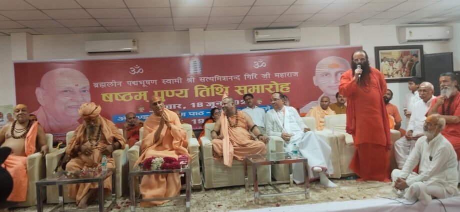 शंकराचार्य स्वामी राजराजेश्वराश्रम महाराज ने कहा कि देश की एकता अखंडता कायम रखने में संत महापुरूषों की हमेशा ही अहम भूमिका रही है। उन्होंने कहा कि ब्रह्मलीन स्वामी सत्यमित्रानंद गिरी महाराज संत परंपरा के गौरव थे। सनातन परंपरांओं के संरक्षण संवर्द्धन और समाज के वंचित वर्ग की सेवा में उनके महत्वपूर्ण योगदान के लिए भारत सरकार ने उन्हें पद्म भूषण से सम्मानित कर समस्त संत समाज का गौरव बढ़ाया। उनके दिखाए मार्ग पर चलते हुए समाज कल्याण में योगदान का संकल्प ही उन्हें सच्ची श्रद्धांजलि है। आचार्य महामंडलेश्वर स्वामी अवधेशानंद गिरी महाराज ने कहा कि वे सौभाग्यशाली हैं कि उन्हें गुरू के रूप में ब्रह्मलीन स्वामी सत्यमित्रांनद गिरी महाराज का सानिध्य प्राप्त हुआ। पूज्य गुरूदेव की शिक्षाओं का अनुसरण करते हुए उनके द्वारा स्थापित संस्थाओं की सेवा परंपरा को आगे बढ़ाना ही उनका उद्देश्य है। अखिल भारतीय अखाड़ा परिषद एवं मनसा देवी मंदिर ट्रस्ट के अध्यक्ष श्रीमहंत रविंद्रपुरी महाराज ने कहा कि ब्रह्मलीन स्वामी सत्यमित्रांनद गिरी महाराज संत समाज के प्रेरणा स्रोत थे। ब्रह्मलीन सत्यमित्रानंद गिरी महाराज ने समाज में समरसता स्थापित करने के साथ धर्म संस्कृति के संरक्षण में जो योगदान दिया। वह सदैव स्मरणीय रहेगा। स्वामी ब्रह्मस्वरूप ब्रह्मचारी व महामंडलेश्वर स्वामी हरिचेतनानंद ने कहा कि देश और समाज को भारत माता मंदिर जैसी संस्था प्रदान करने वाली ब्रह्मलीन स्वामी सत्यमित्रानंद गिरी महाराज संत समाज की दिव्य विभूति थे। आचार्य महामंडलेश्वर स्वामी विशोकानंद व शंकराचार्य स्वामी ज्ञानानंद महाराज ने कहा कि समाज के वंचित वर्ग के बीच जाकर उनकी सेवा और देश के आदिवासी समुदाय को समाज को मुख्यधारा में लाने वाले ब्रह्मलीन स्वामी सत्यमित्रानंद गिरी संत परंपरा के पथ प्रदर्शक थे। ट्रस्ट के सचिव आईडी शास्त्री ने सभी संत महापुरूषों का फूलमाला पहनाकर स्वागत किया और आभार जताया।