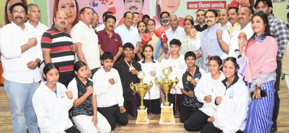 उत्तराखंड बॉक्सिंग एसोसिएशन के तत्वावधान में योगस्थली स्पोटर्स स्टेडियम रोशनाबाद में आयोजित राज्य स्तरीय बॉक्सिंग प्रतियोगिता का रविवार को समापन हो गया। प्रतियोगिता में बालक वर्ग में चंपावत की टीम विजेता, नैनीताल की टीम उपविजेता रही। बालिका वर्ग में पिथौरागढ़ विजेता और स्पोर्टस हॉस्टल पिथौरागढ़ उपविजेता रहे। मुख्य अतिथी खेल मंत्री रेखा आर्य ने विजेता और उपविजेता टीमों को ट्राफी प्रदान की। खिलाड़ियों को शुभकामनाएं देते हुए रेखा आर्य ने कहा कि प्रतियोगिता में खिलाड़ियों ने बेहतर प्रदर्शन किया। लगातार आयोजित की जा रही खेल प्रतियोगिताओं से खिलाड़ियों को राष्ट्रीय और अंतर्राष्ट्रीय स्तर पर आगे बढ़ने के अवसर मिल रहे हैं। उन्होंने मुख्यमंत्री पुष्कर सिंह धामी उत्तराखंड को खेल भूमि के रूप में विकसित कर रहे है। लोहाघाट में स्पोर्टस कालेज निर्माण की प्रक्रिया गतिमान है। इसके अलावा गर्ल्स स्पोर्टस कालेज का निर्माण भी किया जा रहा है। बालिकाओं के लिए खेलों में आने वाला समय बेहतर होगा। राज्य सरकार की खेलों को बढ़ावा देने की नीति के चलते हर घर में एक एथलीट होगा। विधायक रवि बहादुर एवं राज्यमंत्री हेमराज बिष्ट ने भी खिलाड़ियों को बधाई और शुभकामनाएं दी। हरिद्वार बॉक्सिंग एसोसिएशन के अध्यक्ष डा.विशाल गर्ग ने कहा कि प्रतियोगिता में राज्य के 13 जनपदों के खिलाड़ी शामिल हुए और शानदार खेल का प्रदर्शन किया। डा.विशाल गर्ग ने बताया कि प्रतियोगिता के बेस्ट बॉक्सर का खिताब चंपावत राहुल ने एवं बेस्ट प्रमोशन बॉक्सर का खिताब पिथौरागढ़ के समक्षचंद ने जीता। डा.विशाल गर्ग ने बताया कि बॉक्सिंग को बढ़ावा देने के लिए निरंतर प्रतियोगिताओं का किया जाएगा। इस अवसर पर नवीन चौहान, विपिन चौधरी, सुधीर जोशी, राकेश चौधरी, सुनीता चौधरी, विक्रम सिंह, अमित सैनी, सुदेश सैनी, दीपक पवार आदि मौजूद रहे।