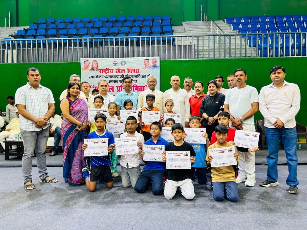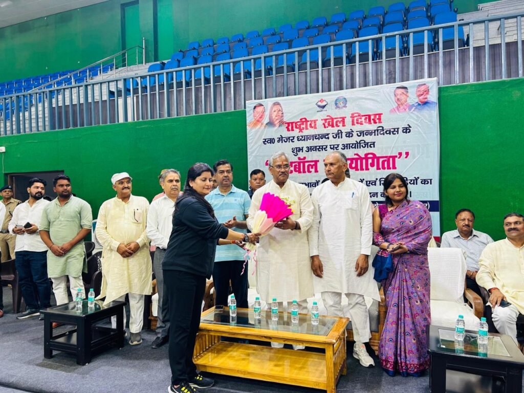 आज दिनांक 29 अगस्त, 2025 को मेजर स्व0 ध्यानचन्द जी के जन्मदिवस को पूरे देश में “राष्ट्रीय खेल दिवस“ के रूप में मनाया जाता है, इस अवसर पर योगस्थली खेल परिसर, रोशनाबाद, हरिद्वार में खेल विभाग द्वारा आयोजित कार्यक्रम का उद्घाटन मुख्य अतिथि श्री त्रिवेन्द्र सिंह रावत, मा0 सांसद लोकसभा क्षेत्र हरिद्वार एवं विशिष्ट अतिथि श्री आदेश चैहान, मा0 विधायक, विधानसभा रानीपुर हरिद्वार द्वारा मेजर ध्यानचंद की फोटो पर पुष्प अर्पित कर किया गया। मा0 अतिथियों द्वारा 38 वें राष्ट्रीय खेलों के पदक विजेताओं एवं पावर लिफ्टिंग मंे भारत का प्रतिनधित्व करने वाली संगीता राणा को स्मृति चिन्ह एवं शाल भेंट कर सम्मानित किया गया। इसके अतिरिक्त मा0 मुख्य अतिथि द्वारा मा0 मुख्यमंत्री उदीयमान खिलाड़ी उन्नयन योजना एवं माननीय मुख्यमंत्री खिलाड़ी प्रोत्साहन योजना में जनपद हरिद्वार से चयनित बालक एवं बालिका खिलाड़ियों को प्रमाणपत्र वितरित किये गये।